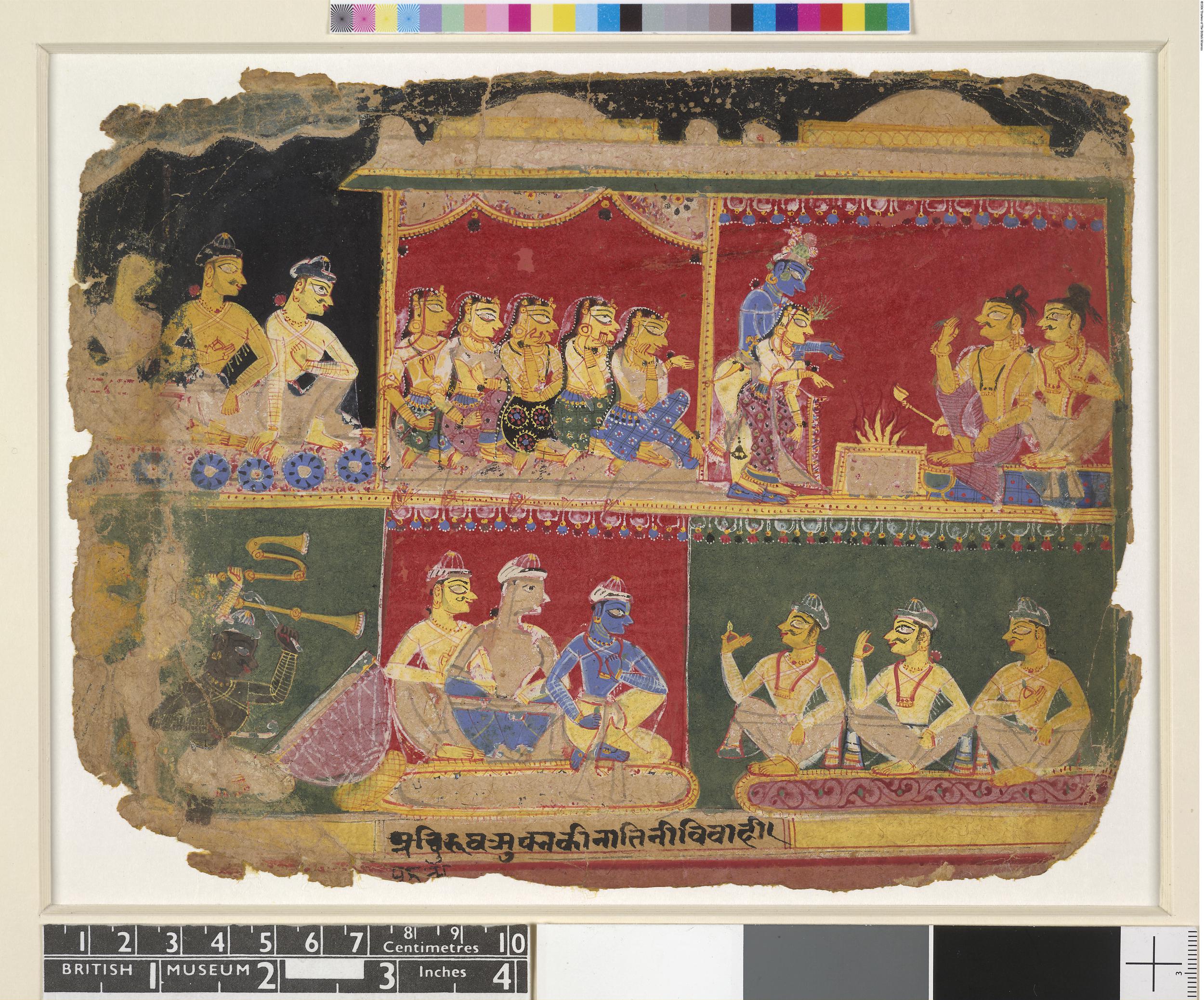 “Aniruddha and his party in discussion with King Rukmi and his advisers, and the wedding of Aniruddha and Rukmi's daughter Rocanā,” Mapping Color, accessed April 8, 2026, https://mappingcolor.omeka.fas.harvard.edu/items/show/55.